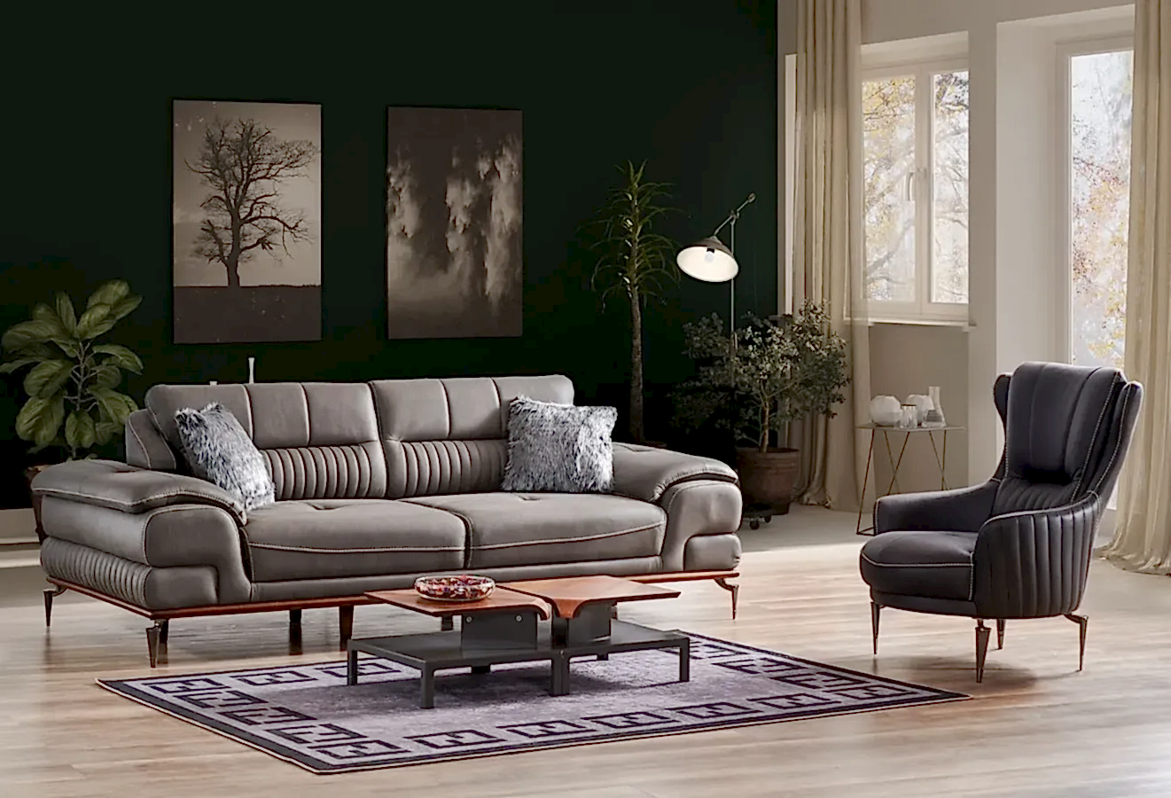 Bununla birlikte, bu koltuk takımı ince dikiş detaylarıyla da dikkat çekiyor. Gri tonları ile tasarlanmış olan Lexsus Koltuk Takımı, oturma odanızda farklı dekoratif tarzlarla rahatlıkla kombinlenebilir. Dolayısıyla, hem modern hem de klasik tarzda döşemelere uyum sağlar.