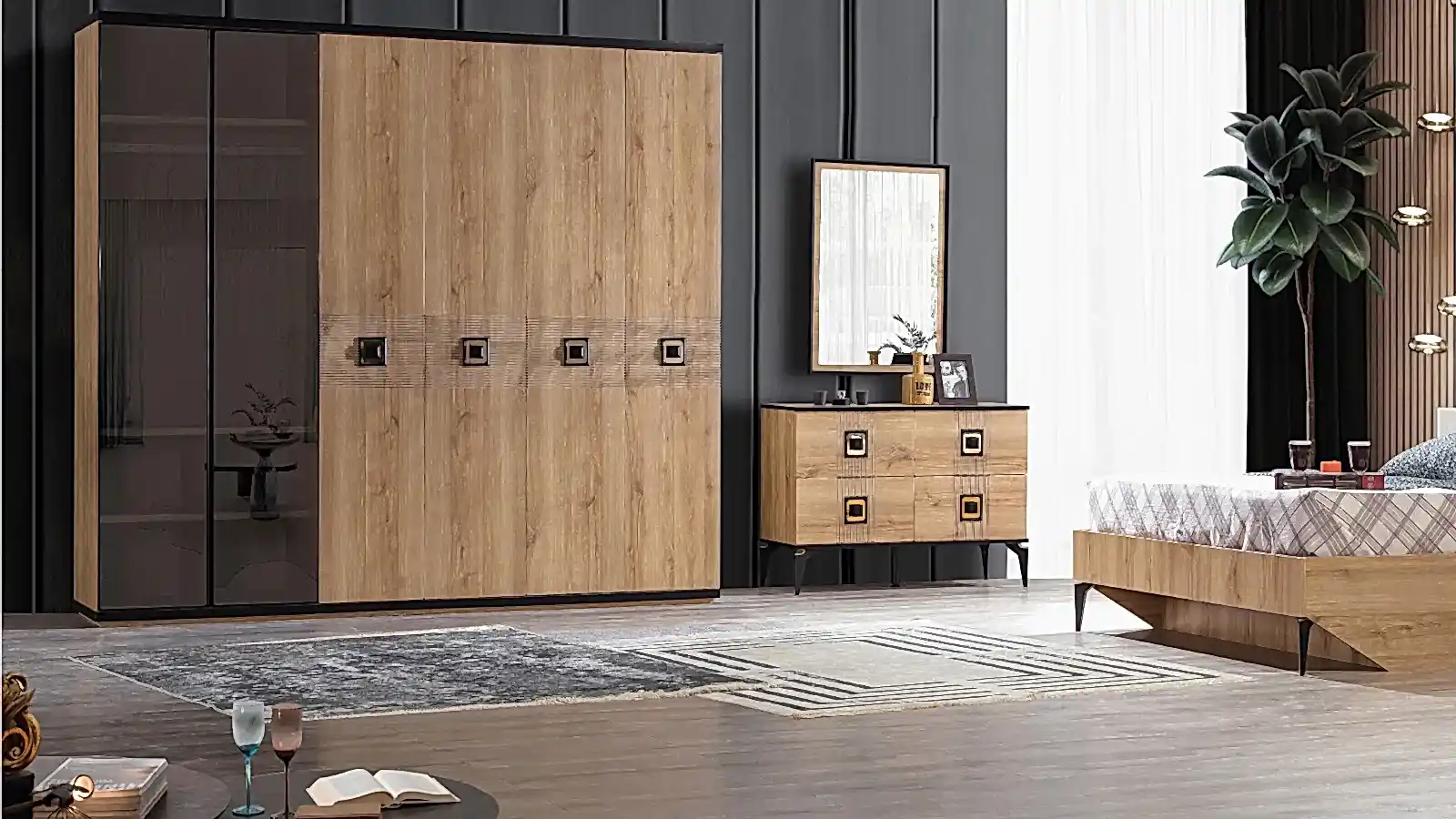Bununla birlikte, kullanışlı tasarımı sayesinde ihtiyaçlarınızı en iyi şekilde karşılar. Yatak odasında aradığınız konforu ve şıklığı bulmanızı sağlayacak olan bu takım, sadece bir yatak odası ürünü değil, aynı zamanda bir yaşam tarzıdır. Ürünü kombine edebileceğiniz farklı dekoratif unsurlarla, evinizdeki atmosferi zenginleştirebilirsiniz.