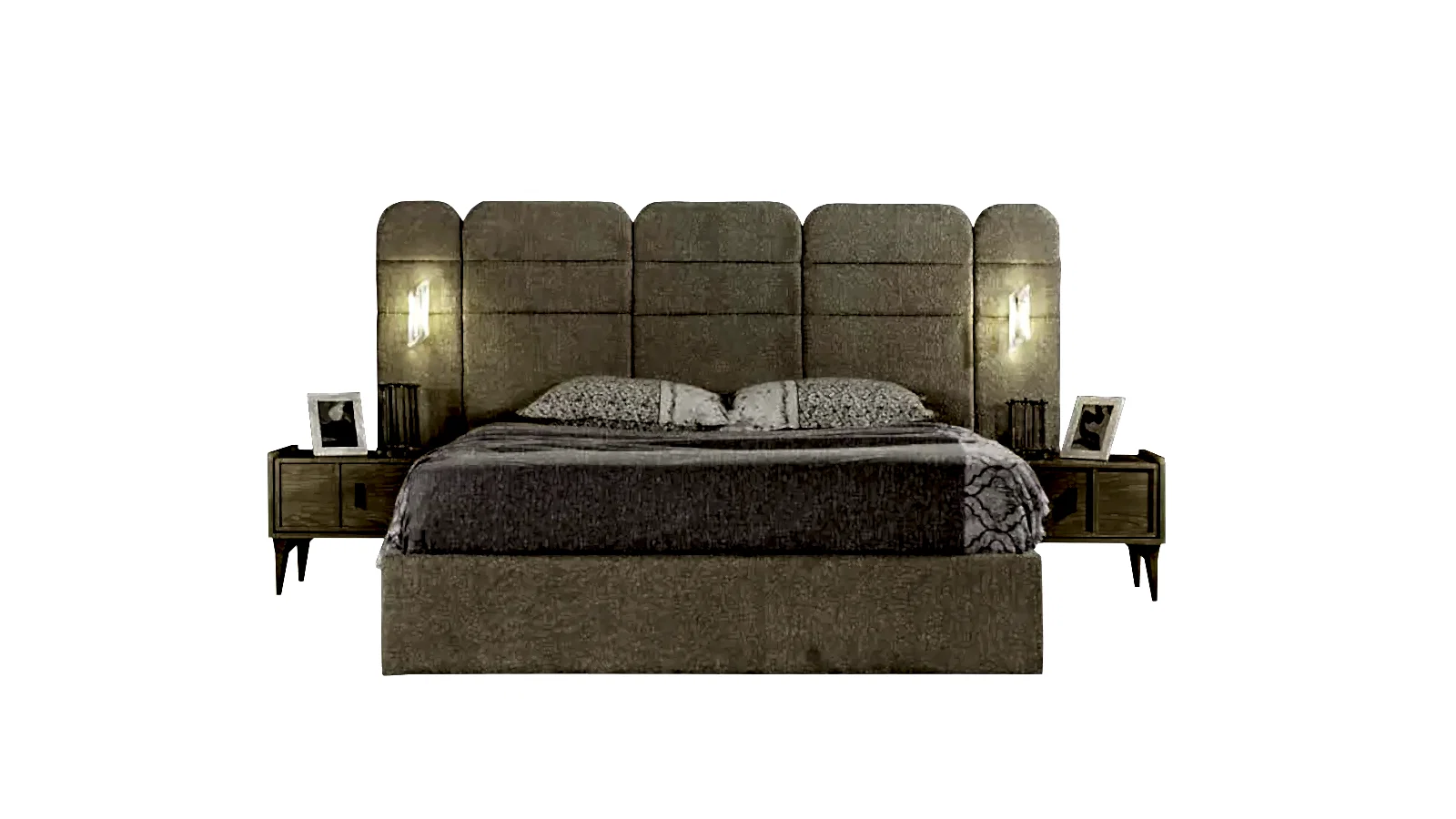 - Yumuşak kumaşa sahip yatak başlığı